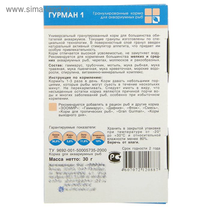 Корм для аквариумных рыб ФИТО М гранулы, 15 гр