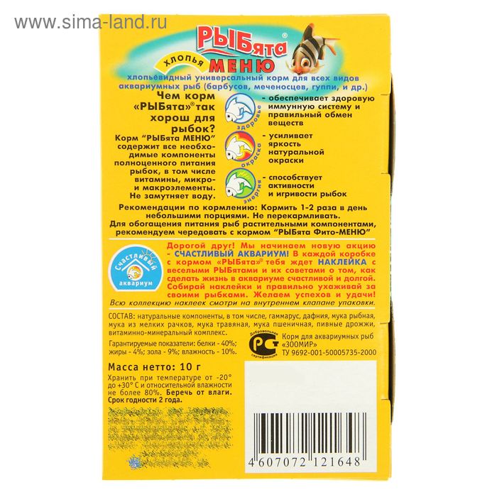 Корм для аквариумных рыб ФИТО М гранулы, 15 гр