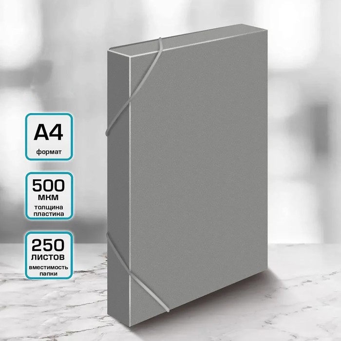 Папка-короб на резинке А4, 700 мкм, корешок 40 мм, Calligrata, пластик, серая, до 300 листов