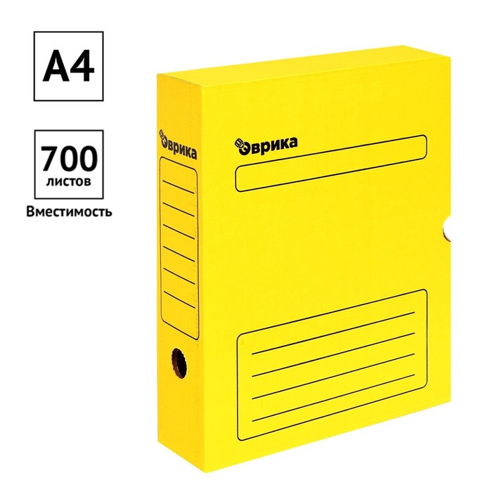 Короб архивный с клапаном А4 Calligrata, 75 мм, микрогофрокартон, до 700 листов, желтый