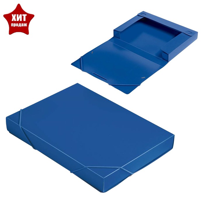 Папка-короб на резинке А4, 700 мкм, корешок 40 мм, Calligrata, пластик, синяя, до 300 листов