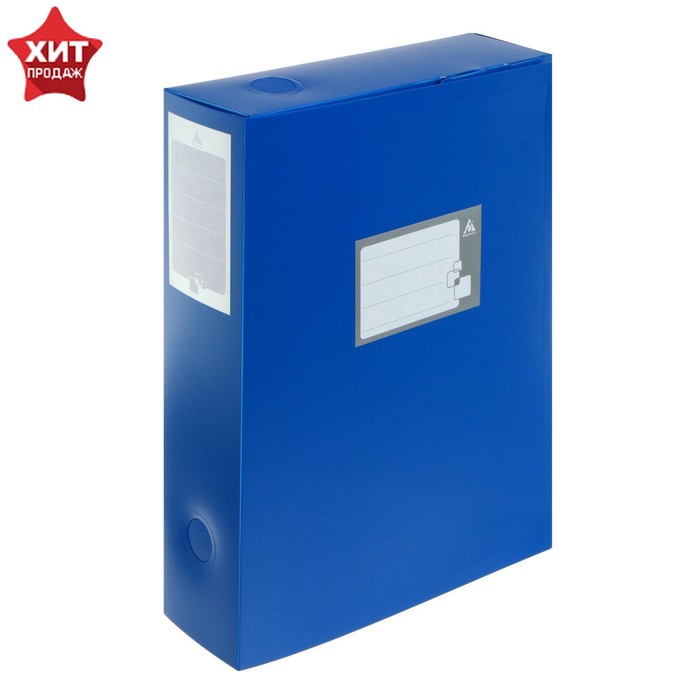 Папка-короб архивная А4 Calligrata, корешок 100 мм, пластик, вырубная застежка, синяя, до 900 листов