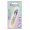 Дизайн корпуса представлен в 3 нежных пастельных оттенках ассорти: розово-голубом, изумрудно-синем, фиолетово-желтом. Подача ленты доступна с обеих сторон корпуса. Общая длина корректирующей ленты – 10 м, ширина – 5 мм.