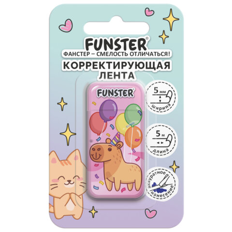 Корректирующая лента FUNSTER – это незаменимый помощник для мгновенного исправления рукописных и печатных текстов. Веселые и милые животные радуют глаз и делают ее идеальным выбором для использования в школе, офисе и дома.