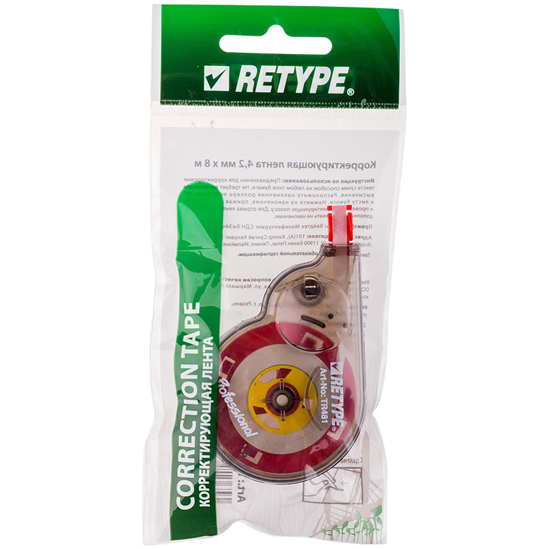 Корректирущая лента, ширина 4,2мм, длина 8м. Прозрачный корпус позволяет видеть расход ленты. Подходит для корректировки машинописного или рукописного текста. Лента точно и плотно закрывает строку. Не требует времени на высыхание. Не содержит растворителей. Корпус ленты удобно располагается в руке. Упаковка - пакет с европодвесом.