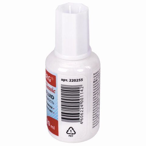 Быстросохнущий корректор является морозоустойчивым и быстро высыхает на бумаге. Флакона объемом 20 мл хватит на продолжительное время. Кисточка позволяет легко наносить жидкость.