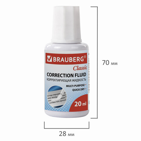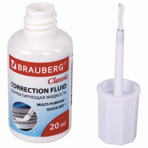 Корректирующая жидкость BRAUBERG обеспечивает аккуратное исправление печатного или рукописного текста.