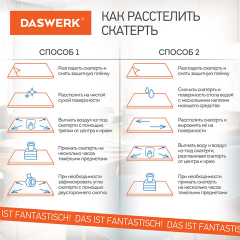 Скатерть клеенка на стол DASWERK удобна и практична для многоразового использования. Скатерть на стол (пленка на стол прозрачная) незаменима дома, в офисе, в местах общественного питания, а также для мероприятий на открытом воздухе.