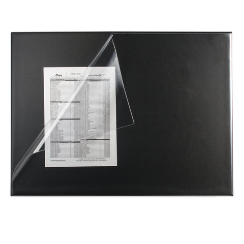 Настольное покрытие для письма придает столу аккуратный вид, служит защитой от разного рода повреждений, обеспечивает удобство при письме. Прозрачный верхний лист отгибается и создает удобный карман для хранения телефонных номеров и актуальных заметок.