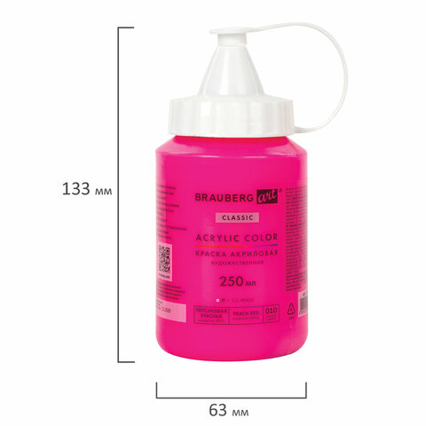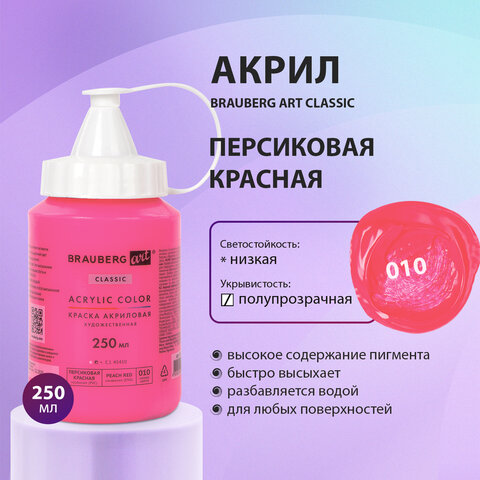 Художественная акриловая краска BRAUBERG ART CLASSIC предназначена для живописи и декоративных работ. Используется при работе почти на любой поверхности: бумаге, картоне, холсте, дереве, коже и т.д.