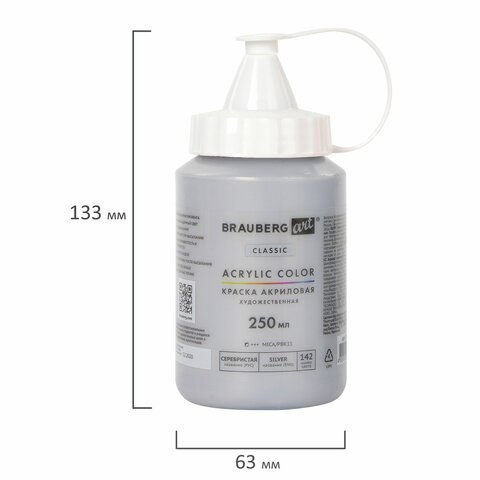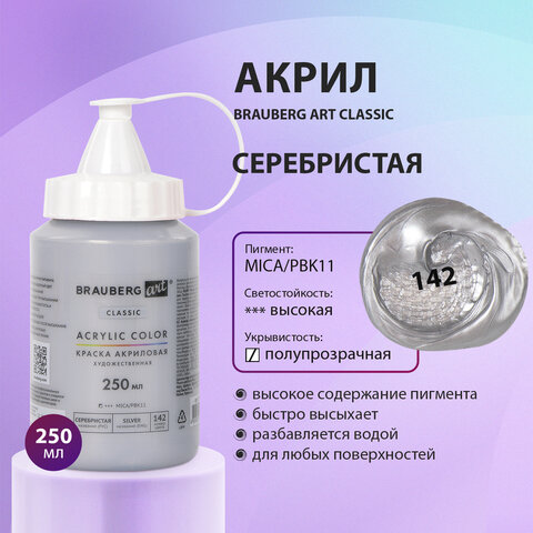 Художественная акриловая краска BRAUBERG ART CLASSIC предназначена для живописи и декоративных работ. Используется при работе почти на любой поверхности: бумаге, картоне, холсте, дереве, коже и т.д.