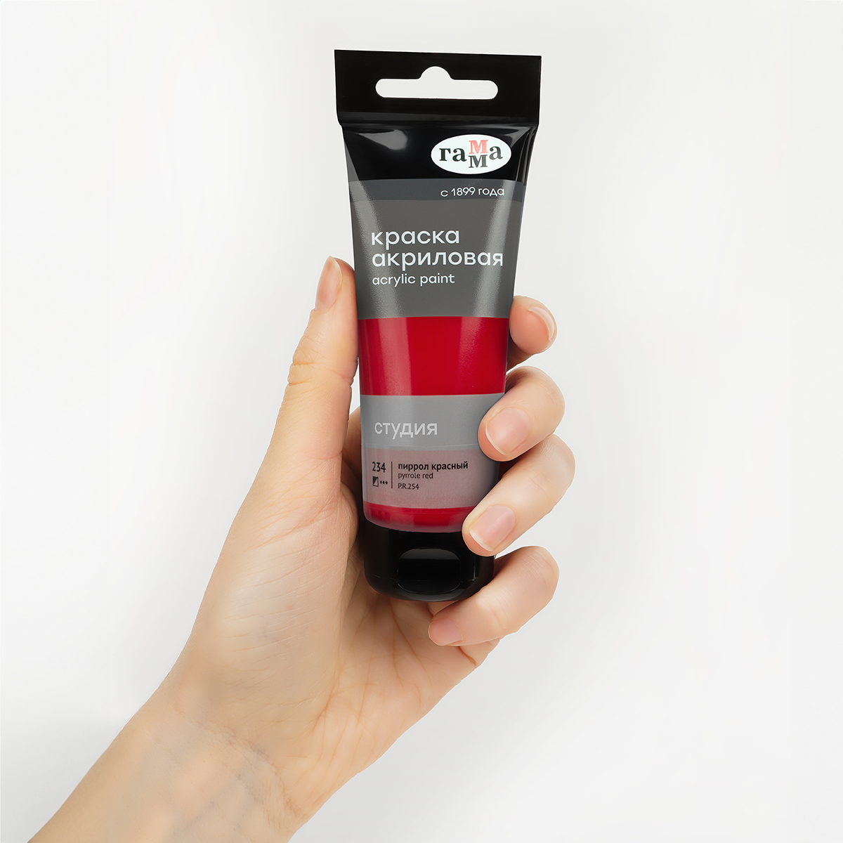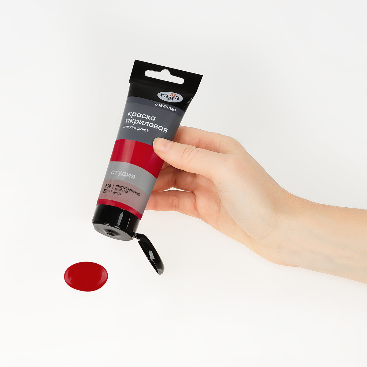 Акриловая краска ГАММА «Студия» предназначена для художественно-живописных и декоративно-прикладных работ. Цвет — пиррол красный. Объём пластиковой тубы — 75 мл.
