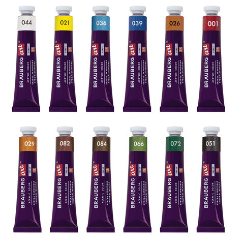 Художественные акриловые краски BRAUBERG ART "DEBUT" предназначены для живописи и декоративных работ.