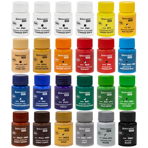 Акриловые краски BRAUBERG HOBBY предназначены для декоративных работ и живописи.