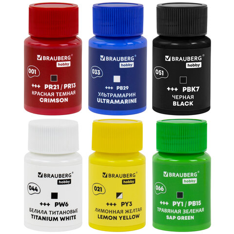 Акриловые краски BRAUBERG HOBBY предназначены для декоративных работ и живописи.