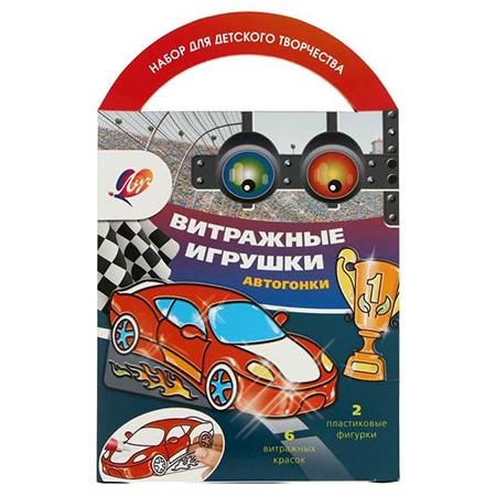 Набор красок по стеклу " Луч " Автогонки, в наборе: рисунок - шаблон, 5 туб с краской по стеклу, картонная упаковка, европодвес