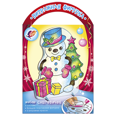 Набор красок по стеклу " Луч " Снеговичок, в наборе: пластмассовый шаблон, 6 туб по 5мл с краской по стеклу, картонная упаковка, европодвес