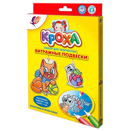 Набор красок по стеклу " Луч " Витражные подвески. Поиграем в мультики, в наборе: пластиковые подвески - 3шт, витражные краски - 6цв