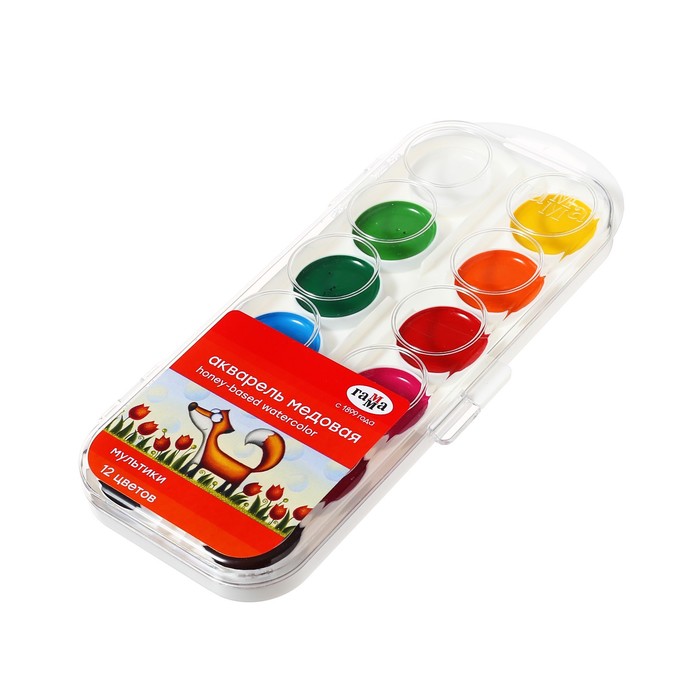 Акварель 12 цветов, упаковка картон «Буки Бяки»