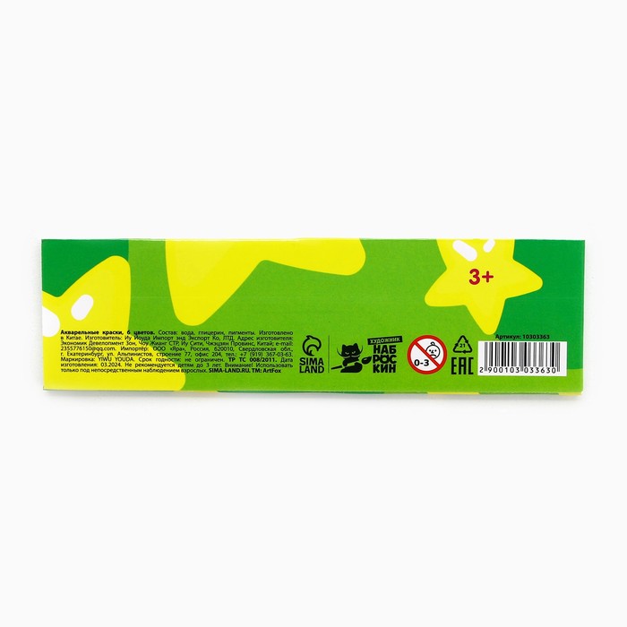 Акварель 6 цветов «Буки Бяки» упаковка картон