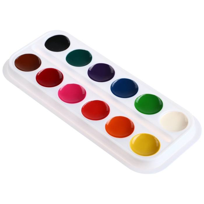 Акварель 12 цветов, упаковка картон «Буки Бяки»