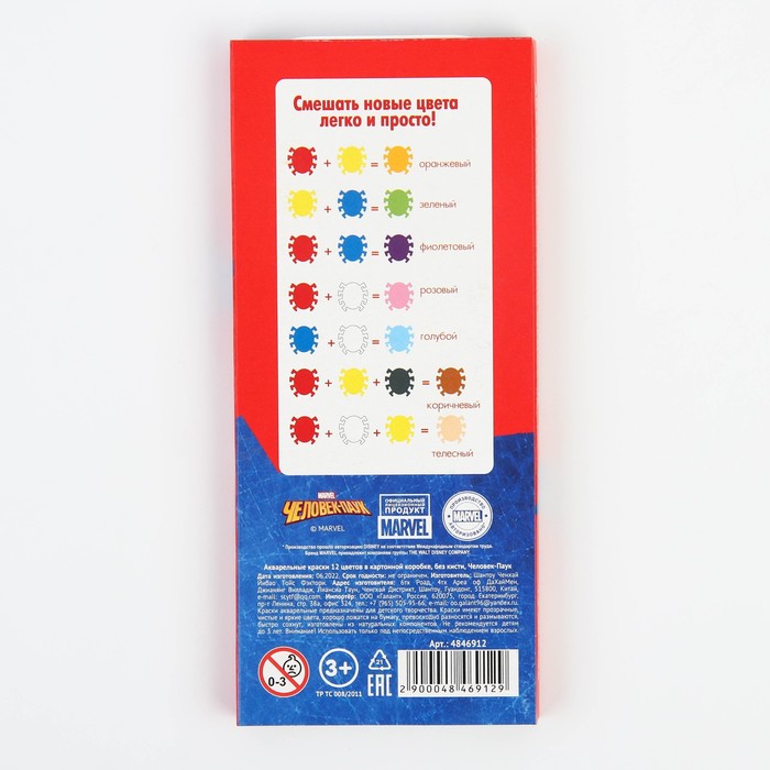 Акварель 12 цветов, упаковка картон «Буки Бяки»