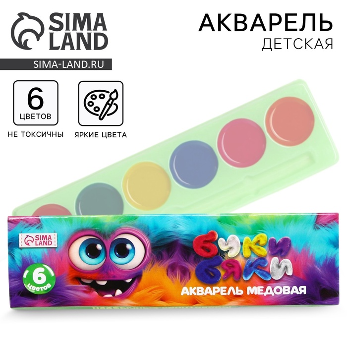 Акварель 6 цветов «Буки Бяки» упаковка картон