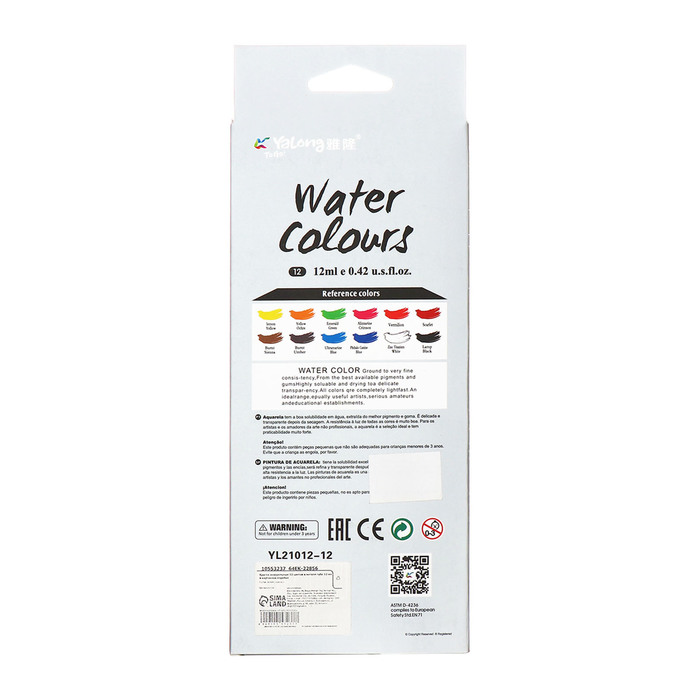 Акварель 12 цветов, упаковка картон «Буки Бяки»