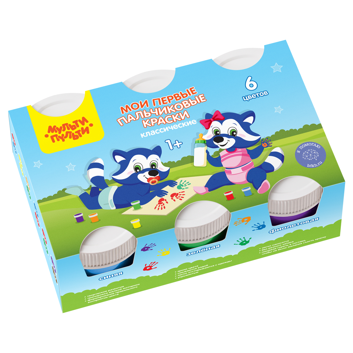 Краски пальчиковые классические Мульти-Пульти "Мои первые пальчиковые краски", 6 цветов, 210мл, для малышей, 1+, картон
