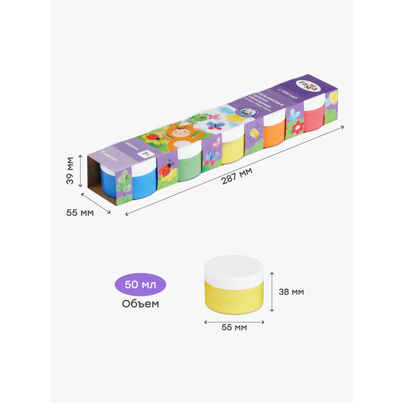 Краски пальчиковые для малышей от 1 года, классические цвета, 6 по 35 мл, ЮНЛАНДИЯ, 192567