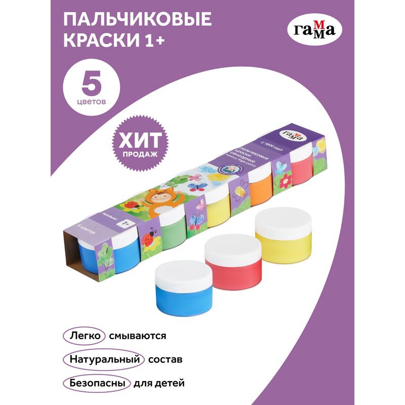 Краски пальчиковые Гамма "Малыш", сенсорные, 06 цветов, 40мл, картон. упаковка NEW