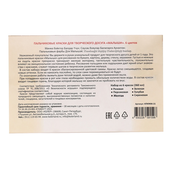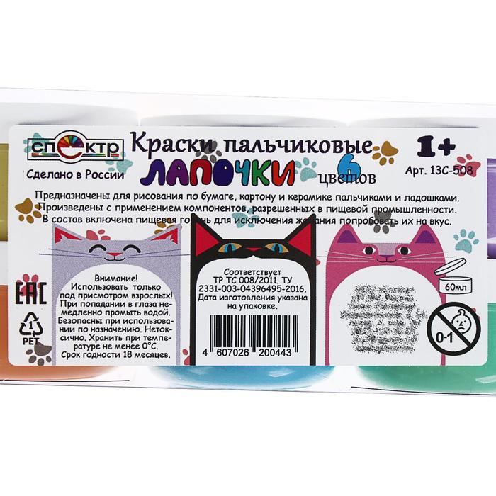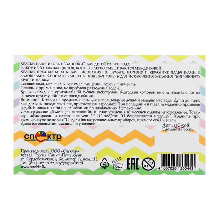 Краски пальчиковые набор 6 цветов по 40 мл Calligrata от 1 года