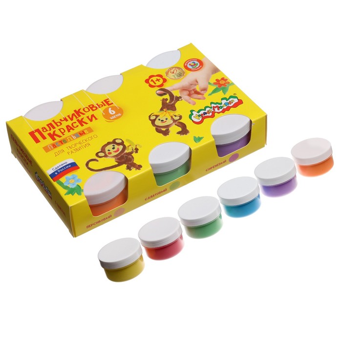 Краски пальчиковые набор 6 цветов по 40 мл Calligrata от 1 года