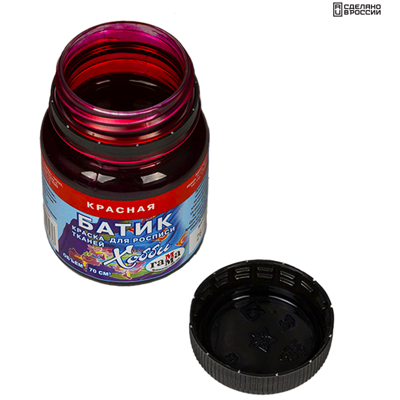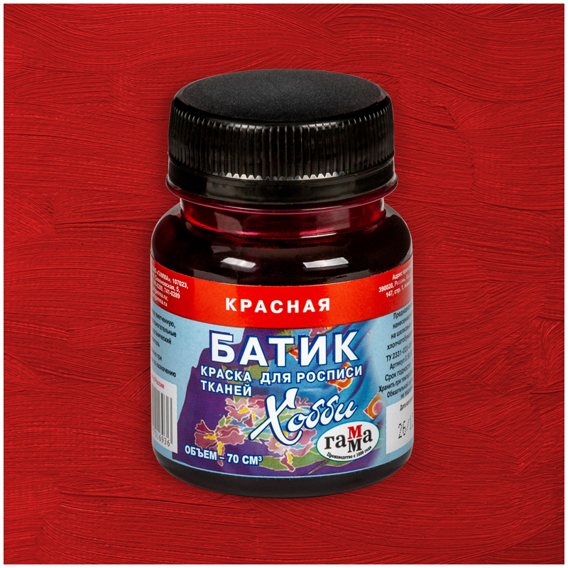 Краска по ткани ГАММА серии «Батик-акрил» красного цвета подходит для создания рисунков на одежде из натуральных тканей — платках, салфетках, шарфиках. После того, как работа закончена, необходимо закрепить краски на ткани методом сухого запаривания. Так роспись сохранится надого и не исчезнет после первой стирки. Объём баночки с завинчивающейся крышкой — 70 мл.<br/>• Цвет: красный;<br/>• Упаковка: пластиковая баночка с завинчивающейся крышкой;<br/>• Объём баночки: 70 мл.