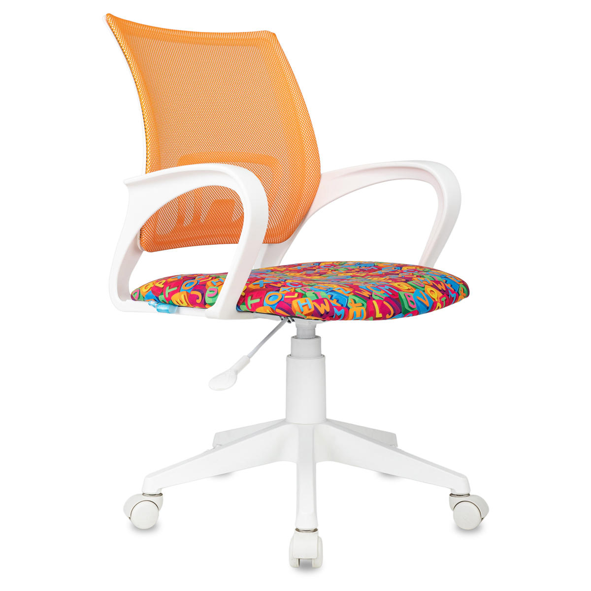 Кресло детское Helmi HL-K95 R (W695) "Airy", спинка сетка оранжевая/сиденье ткань с рисунком алфавит, пиастра, пластик белый