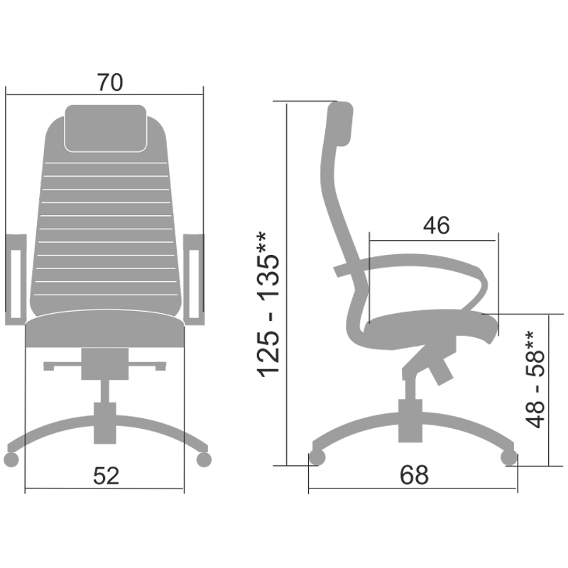 Каркас кресла: цельный стальной, покрытый зеркальным хромом; Подлокотники: износостойкие из экокожи; Подголовник: износостойкий из экокожи; Варианты обивки: сиденье и спинка из экокожи MPES; Пятилучье: стальное литое, покрытое зеркальным хромом; Механизм качания: "Мультиблок"; Ролики: полиуретановые; Рекомендуемая максимальная нагрузка: 150 кг. Произведена замена модификации .03 на .04 (поясничный подпор 2D). Наличие в одной поставке кресел с разн