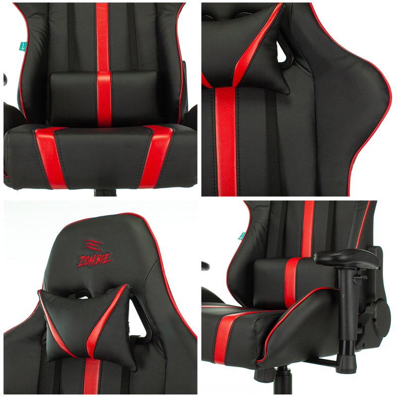 Кресло компьютерное DEFENDER Tornado, 2 подушки, подставка для ног, экокожа, черное/красное, ш/к 26722, 64057