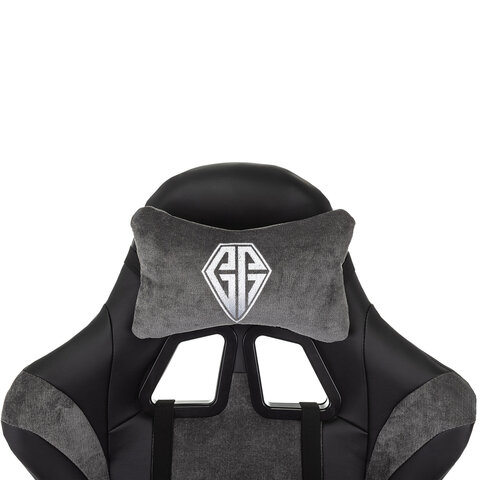 Кресло компьютерное DEFENDER Strider, 2 подушки, ткань/экокожа, черное/серое, ш/к 26715, 64056