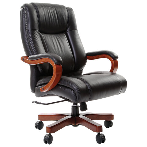 Кресло из натуральной кожи CH 503, нагрузка до 180 кг, дерево, черное