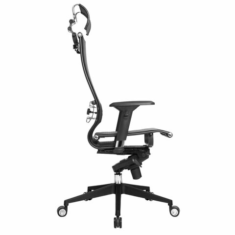 Кресло офисное МЕТТА "К-32-2D" хром, экокожа, подголовник, сиденье и спинка мягкие, черное