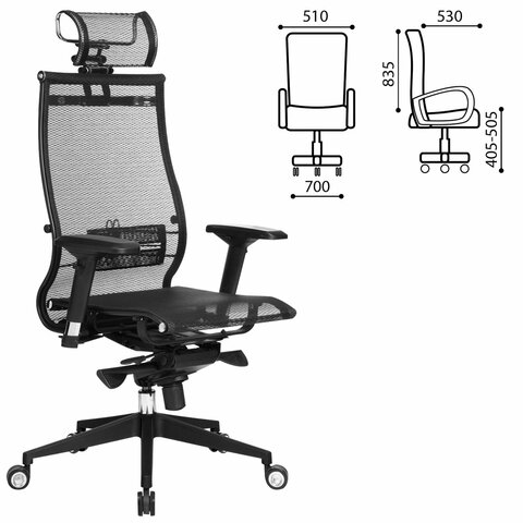Кресло офисное МЕТТА "SAMURAI" Lux, экокожа, регулируемое сиденье, черное