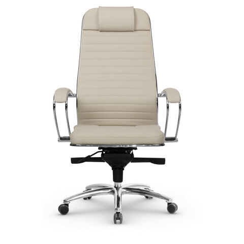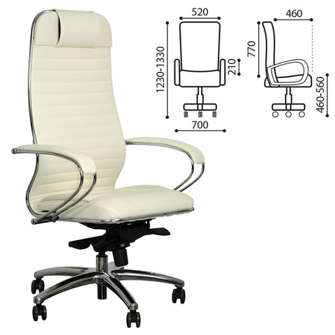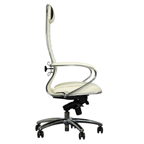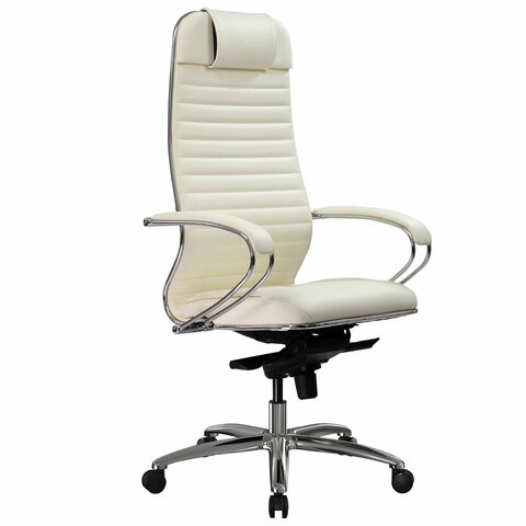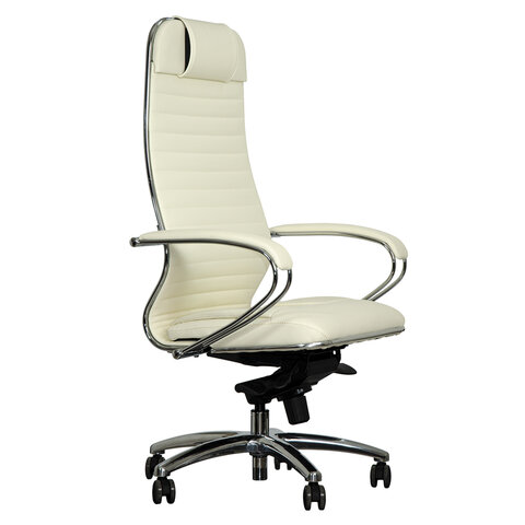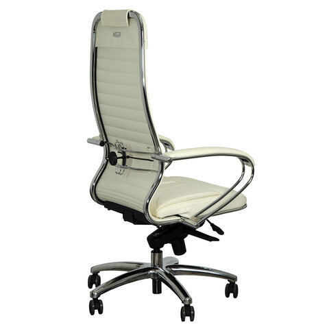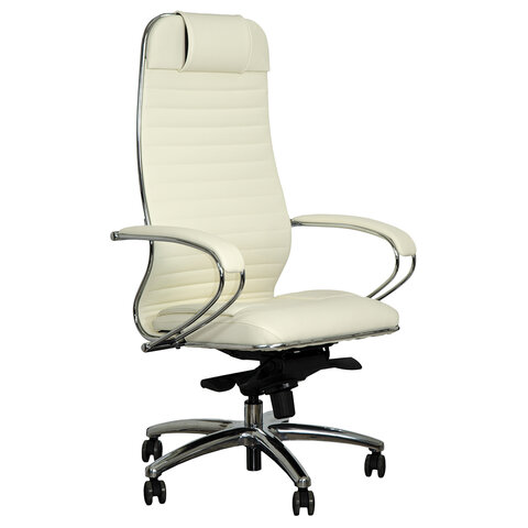 Кресло офисное МЕТТА "К-34" хром, экокожа, подголовник, сиденье и спинка мягкие, белое