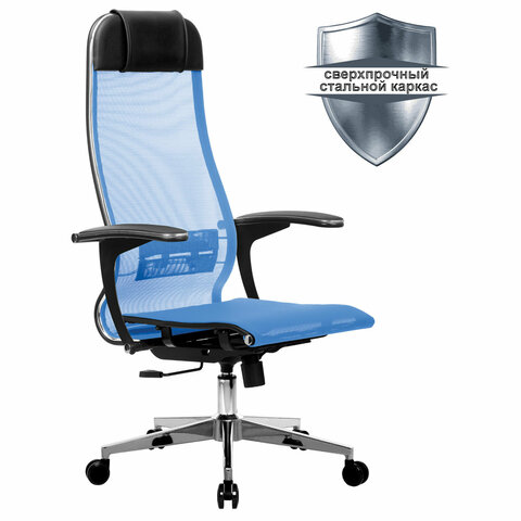 Кресло офисное МЕТТА "К-4-Т" хром, прочная сетка, сиденье и спинка регулируемые, голубое