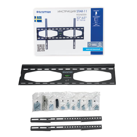 Кронштейн-крепление для ТВ настенный, до 45 кг, VESA 75х75-400х400, 32"-70", черный, SONNEN, 455949