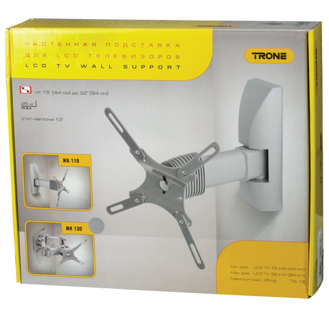 Кронштейн TRONE ЖК-130 предназначен для крепления на стену LCD, LED, ЖК телевизоров с диагональю экрана 15"-32" (38 см – 81,3 см).