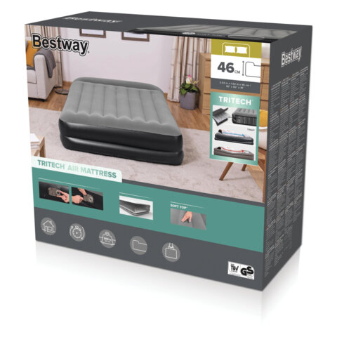 Надувная кровать 152х203х46 см, с подголовником, встроенный насос 220В, до 300 кг, BESTWAY, 67403
