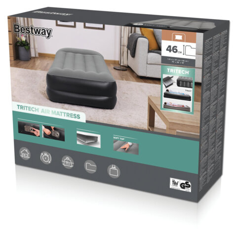 Надувная кровать 97х191х46 см, с подголовником, встроенный насос 220 В, до 150 кг, BESTWAY, 67401