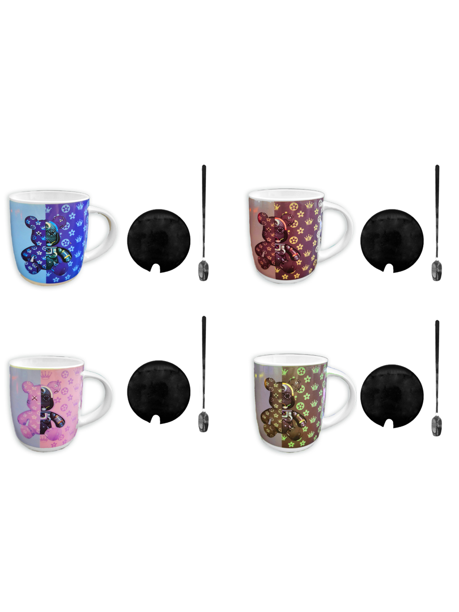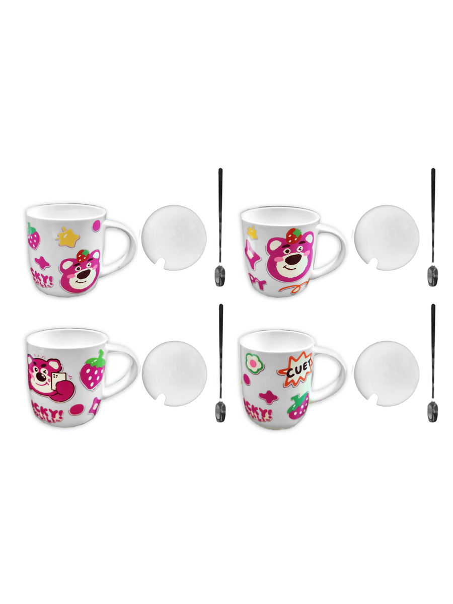 Кружка керамическая " KWELT " 350мл, Bear, крышка и ложка в комплекте, ассорти (без возможности выбора дизайна), картонная упаковка