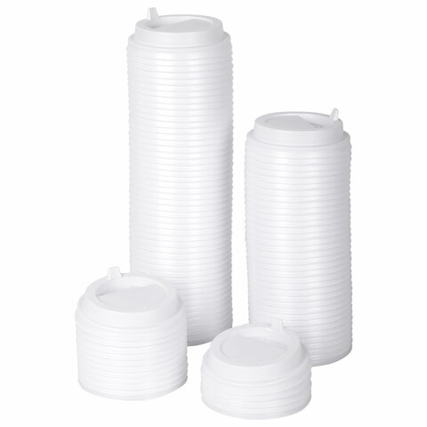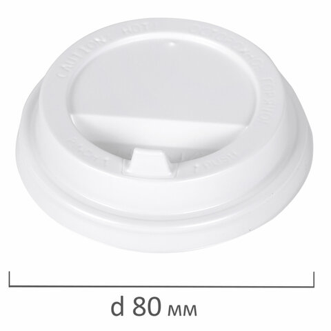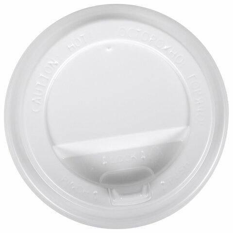Одноразовые крышки для стакана 250 мл (d-80), КОМПЛЕКТ 100 шт., питейник, белые, ФОРМАЦИЯ, CH-80-A, CH-80-А