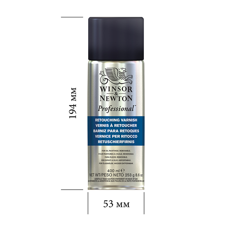 Глянцевый ретушный лак для масла "Professional Satin Varnish", аэрозоль 400мл. Подходит для масляных и алкидных красок. Не желтеет и не трескается. Отчищается дистиллированным скипидаром "Distilled Turpentine".